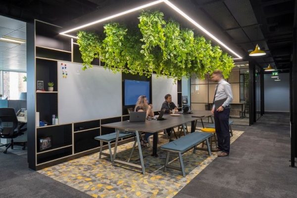 Các mảng tường cỏ màu xanh cũng được sử dụng thường xuyên hơn, giúp cho đôi mắt được nghỉ ngơi sau khi nhìn màn hình trong thời gian dài và làm cho không gian thêm sinh động, giản dị.